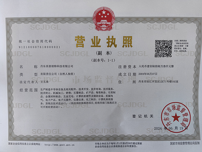 丹東英普朗特科技有限公司始建于1998年10月,2004年6月與澳大利亞合資重建,公司占地面積5300平方米,科研生產建筑面積4300平方米,是IC制造業,半導體裝備的專業生產廠家,我公司產品并通過了省級產品鑒定和科技成果鑒定,被《世界經理人周刊》評為《中國500******新產品》,暢銷海內外。2010年,公司通過了 ISO 9001:2008國際質量管理體系標準認證,并榮獲遼寧省高新技術企業和丹東市民營科技企業稱號。